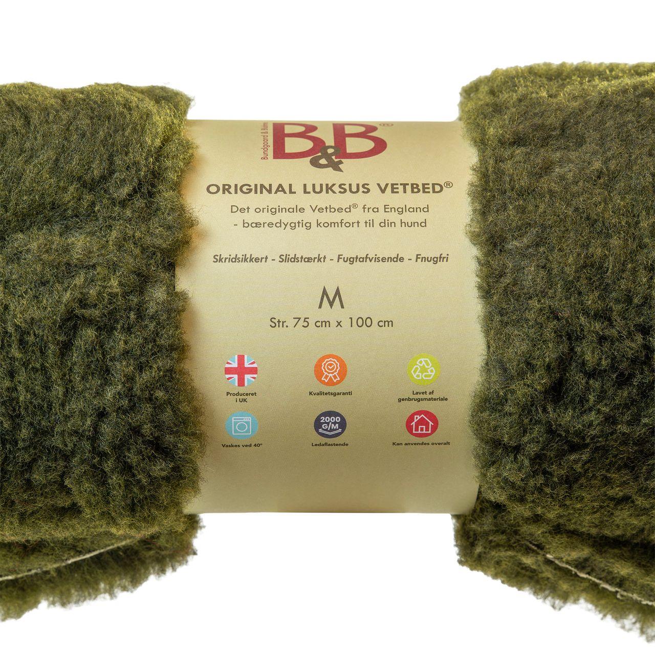 Vetbed® Original Olivengrøn - medium 75 x 100 cm Forside » Vetbed® Vejl. udsalgspris 299,00 DKK B&B Original Luksus Vetbed Olivengrøn - medium 75 x 100 cm Det originale Vetbed® fra England er bæredygtig komfort til din hund. Et premium hundetæppe, der kombinerer komfort, funktionalitet og bæredygtighed. Tæppet er fremstillet af hele 95% genbrugsmaterialer – et grønnere valg uden at gå på kompromis med kvaliteten. Beskrivelse B&B Original Luksus Vetbed Olivengrøn - medium 75 x 100 cm Det originale Vetbed® fra England er bæredygtig komfort til din hund. Et premium hundetæppe, der kombinerer komfort, funktionalitet og bæredygtighed. Tæppet er fremstillet af hele 95% genbrugsmaterialer – et grønnere valg uden at gå på kompromis med kvaliteten. Vetbed® er designet med omtanke: Skridsikker bagside sikrer, at tæppet bliver liggende, hvor det skal Varmeregulerende og hygiejnisk – perfekt til både kolde og varme overflader Allergivenligt, ugiftigt og skånsomt mod selv den mest følsomme hud Luvhøjde på hele 2,8 cm – for ekstra blødhed og isolering. Ledaflastende. Tæppet kan maskinvaskes ved 40 °C og holder sin form og funktion vask efter vask. Brug det i kurven, i transportkassen, på gulvet, i bilen – eller hvor end din hund foretrækker at hvile sig. Fordele: • Slidstærkt og langtidsholdbart • Hurtigtørrende og fugtafvisende • Let at rengøre og vedligeholde • Bevarer form og struktur – selv efter vask • Modstandsdygtigt over for skimmel og bakterier 75 x 100 cm Tips & Tricks: Har din hund tendens til at blive køresyg, kan du med fordel lade den ligge i bilen på det skridsikre Vetbed. Følelsen af at ligge fast og sikkert, kan for mange hunde være det som gør at køreturen kan blive en god oplevelse.EAN: 5711746000784 Adresse Postnummer By Land Telefonnummer www Latitude Longitude Varenummer: 908355